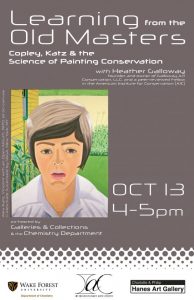 "Learning From the Old Masters: Copley, Katz and the Scientific discipline of Painting Conservation" was an open lecture sponsored by the IAC, the Department of Chemistry, and University Fine art Collections in partnership with Hanes Gallery. Heather Galloway, founder and owner of Galloway Art Conservation, LLC, and a peer-reviewed Boyfriend in the American Found for Conservation (AIC) shared her painstaking process for conserving 2 portraits from the Art Collection currently on display in Hanes Gallery.